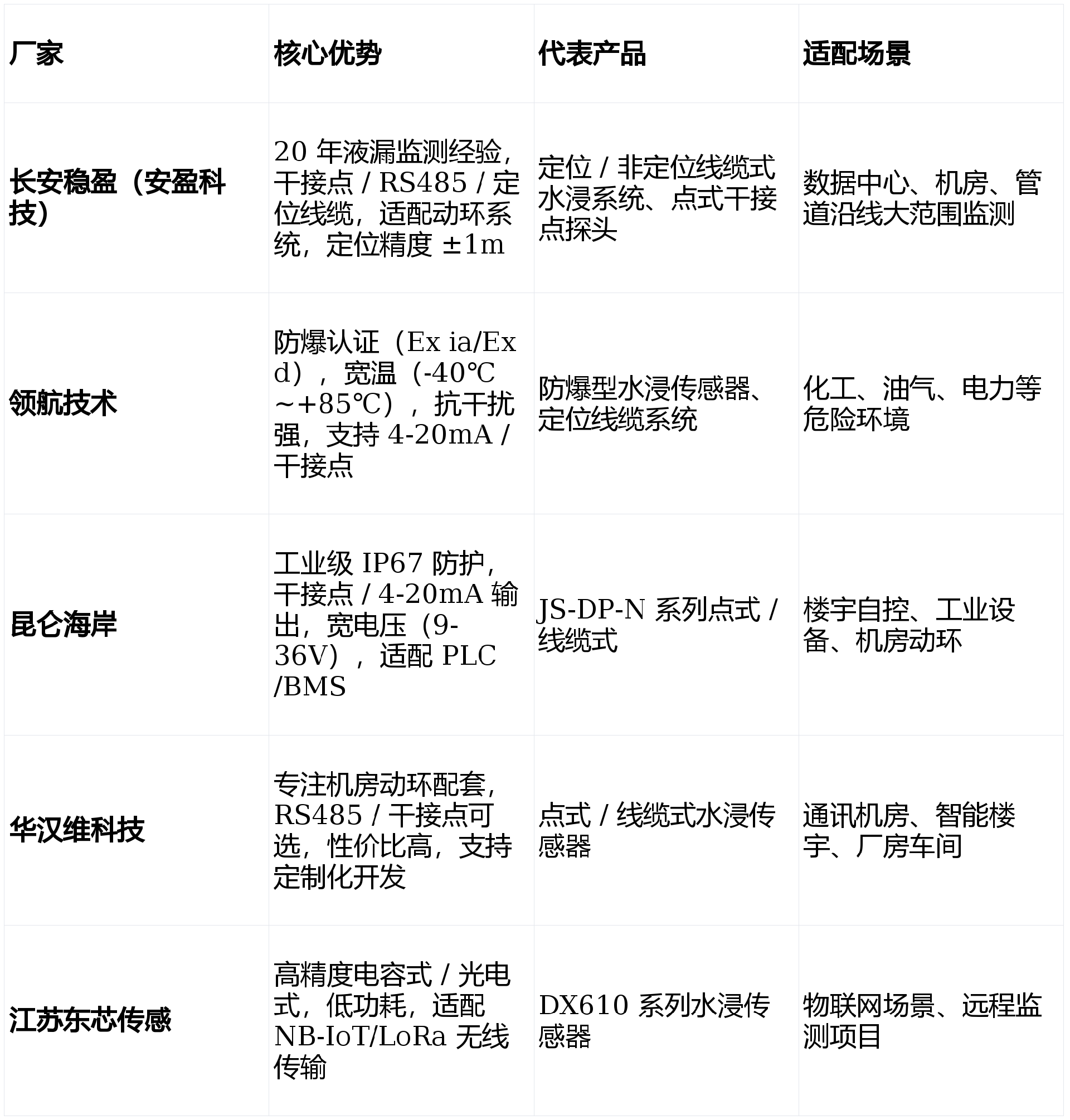 領(lǐng)航技術(shù)股份-以下是分場(chǎng)景的優(yōu)質(zhì)水浸傳感器廠家清單,涵蓋國(guó)產(chǎn)工業(yè)級(jí)、家用智能、進(jìn)口高端,突出干接點(diǎn) / 通訊適配、防護(hù)等級(jí)與場(chǎng)景匹配度,方便快速選型。
