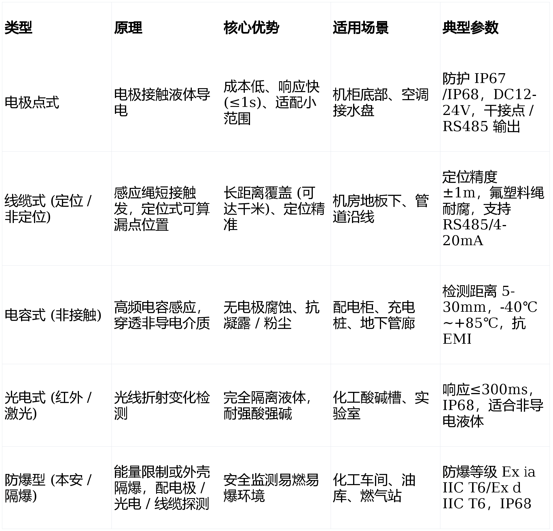 1. 定場景與范圍:小范圍用點(diǎn)式,長距離 / 定位用線纜式,腐蝕環(huán)境用非接觸 (電容 / 光電),防爆場景選本安 / 隔爆型。